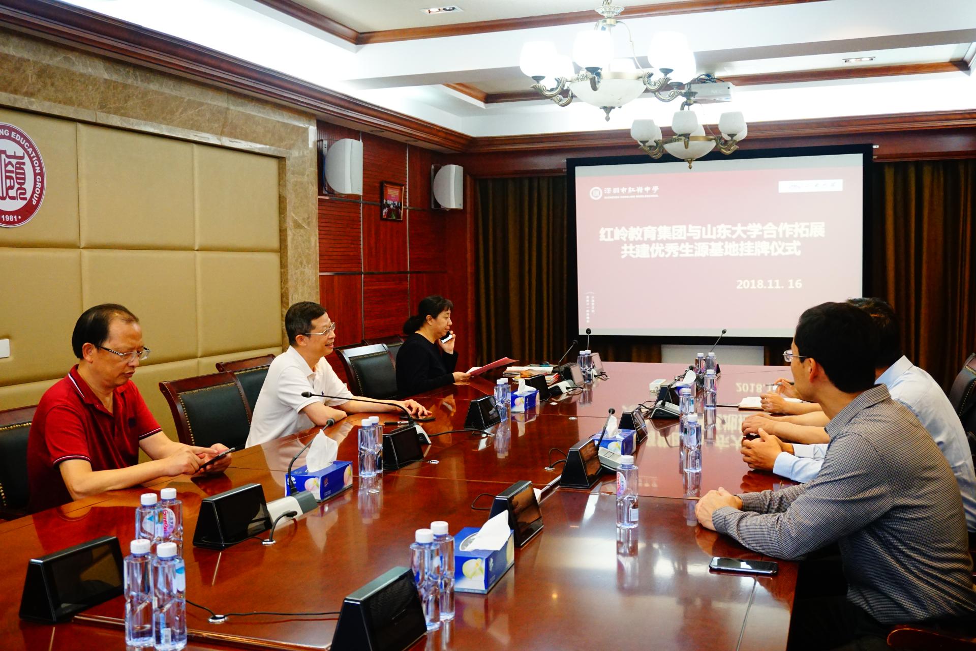 王卿璞一行走访参观了深圳中学、深圳市红岭中学、阳江市第一中学等重点中学,分别与各学校领导进行了座谈交流。在交流会上,王卿璞介绍了山东大学的基本情况、人才培养理念和学校发展目标,重点介绍了我校的学科特色,招生政策,专业就业,近年来在粤录取以及各生源基地学生招生情况。王卿璞表示,近年来广东省优秀学生报考山东大学的热情越来越高,山东大学热烈欢迎广东省更多的学生报考山东大学!深圳研究院也将不定期组织邀请山东大学的领导、专家、教授到优秀生源输送基地做学术报告和演讲,与学校一起引导中学生担承历史责任,激发中学生的学习热情,帮助中学生树立正确的世界观、人生观和价值观。组织优秀中学生来山东大学参观学习,为优秀学生的发展搭建良好的平台。