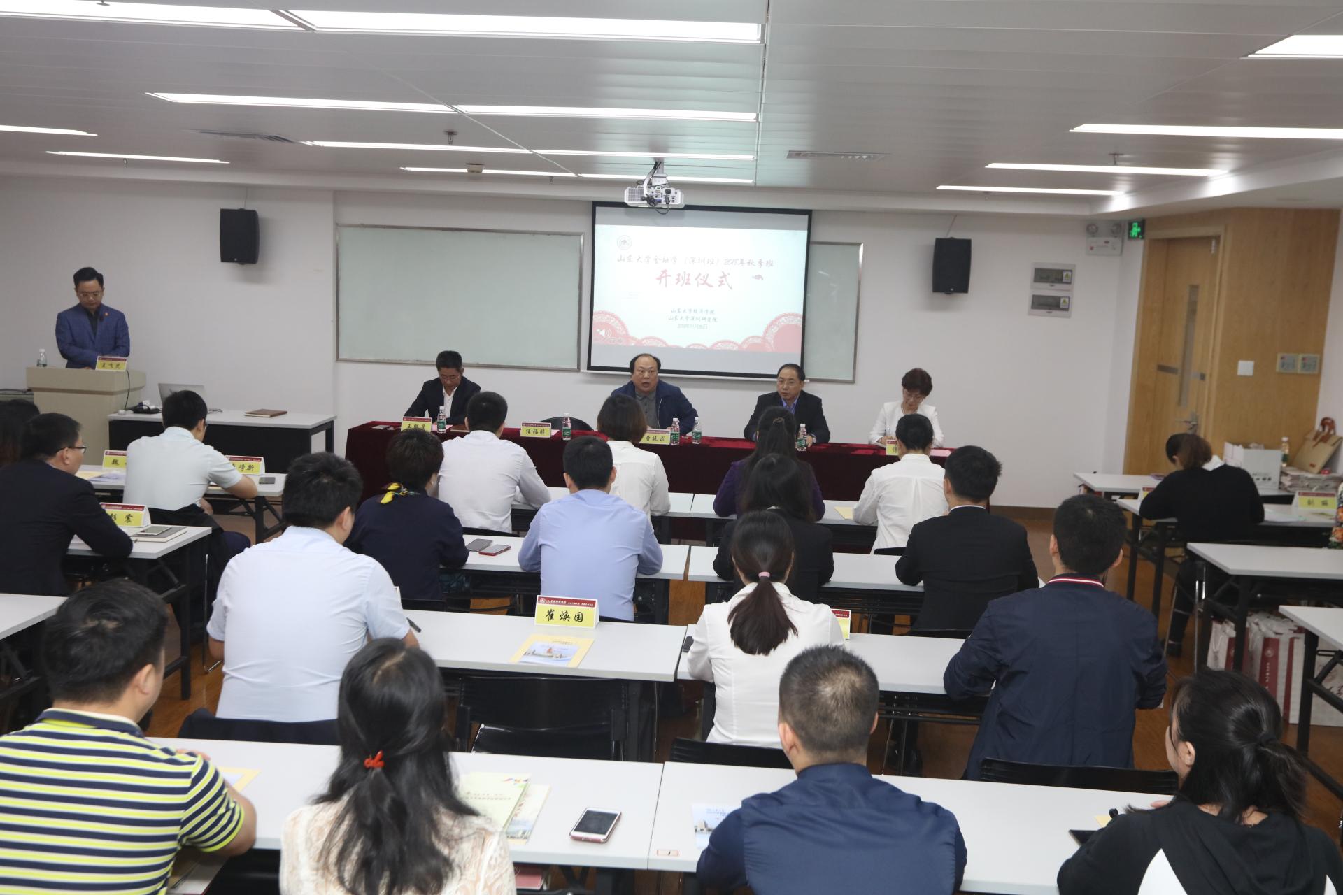 开班仪式结束后,与会领导与师生合影留念,随后开始了金融学的课程。此次授课是曹廷求教授为大家讲述的前沿讲座《当前经济金融形势与走向分析》。曹教授前言的理论成果和平易近人的授课方式受到学员一致好评。