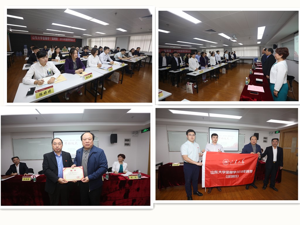 11月25日上午,山东大学金融学2018年秋季(深圳班)开学典礼在深圳虚拟大学园隆重举行。山东大学经济学院院长曹廷求、中信银行深圳罗湖口岸支行行长刘暾、山东大学深圳研究院常务副院长兼合作发展部副部长王明星出席了开学典礼。此次典礼由山东大学深圳研究院办公室主任王飞虎主持。