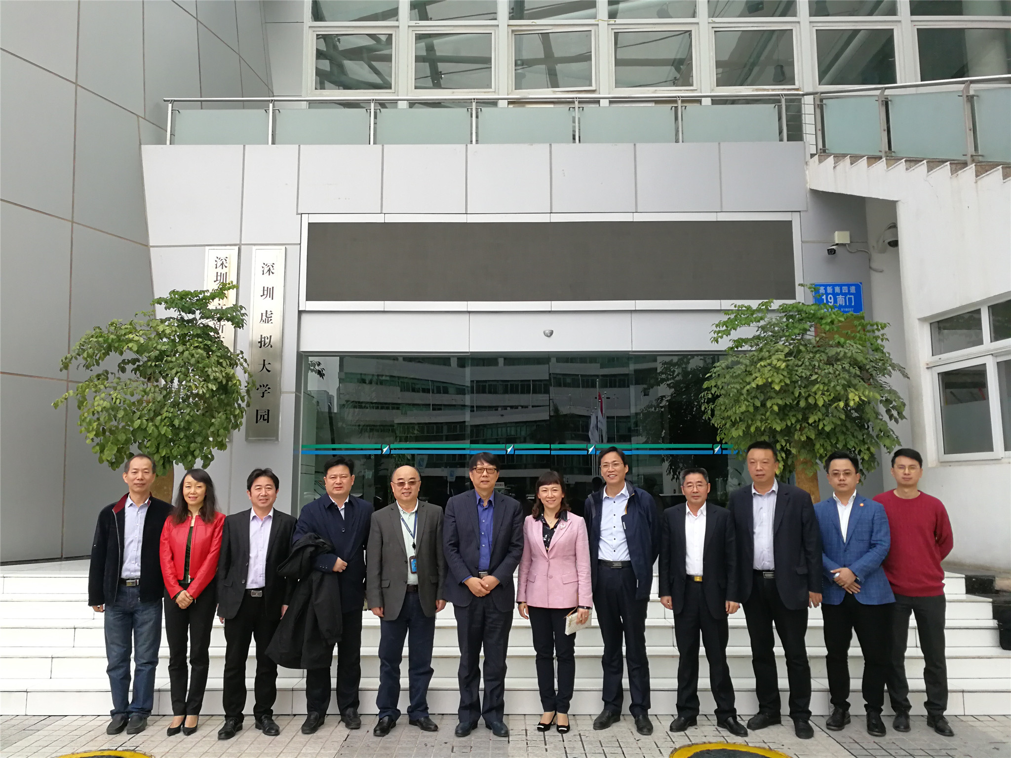 王明星陪同贾磊一行沿着研究院发展的足迹参观回顾了研究院的办公旧址、虚拟大学园的教育科研环境及研究院现在的办公环境,随后与深圳研究院工作人员进行了座谈。