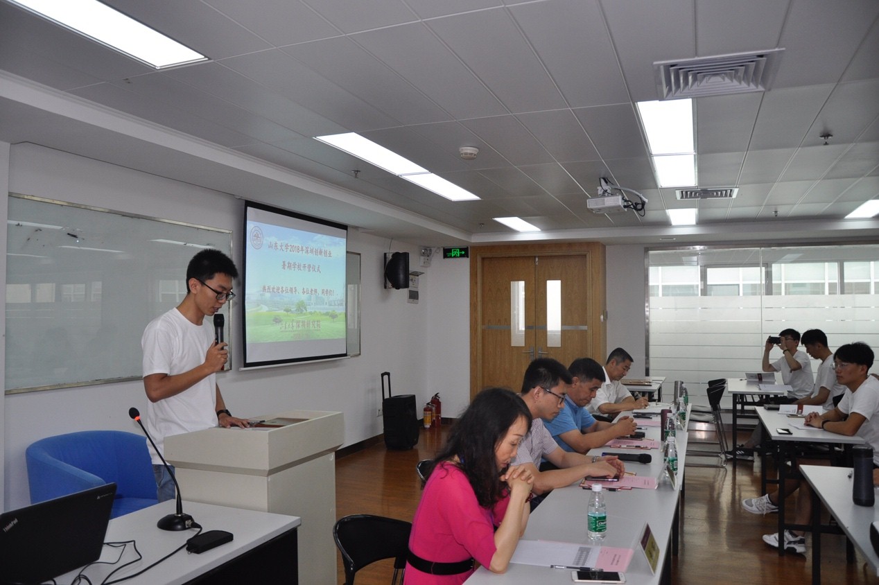 王明星在开幕式上为同学们致辞,他提出今年的暑期学校有以下三点创新:一是学员的选拔由济南校区扩展到威海、青岛校区,实现了一校三地多学院多专业的覆盖;二是在原有的机械臂实践方向基础上,增加了新旧动能转换工程方向;三是承办主体由学校上升到团市委、科创委、虚拟大学园共同参与、校地共建。同时勉励大家要以认真努力的心态迎接两周的学习时间生活,遵守学校及相关单位的制度和纪律,并加强与同学、老师、研究院及学校的沟通。