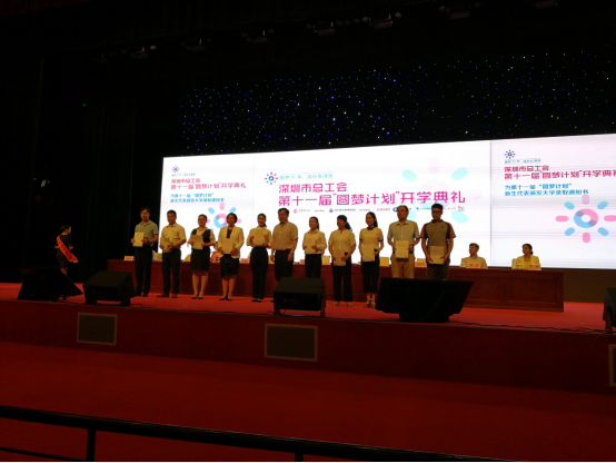 9月28日下午,深圳总工会第十一届“圆梦计划”开学典礼在市民中心隆重举行。山东大学继续教育学院院长靳光华、山东大学深圳研究院常务副院长王明星出席了此次典礼。