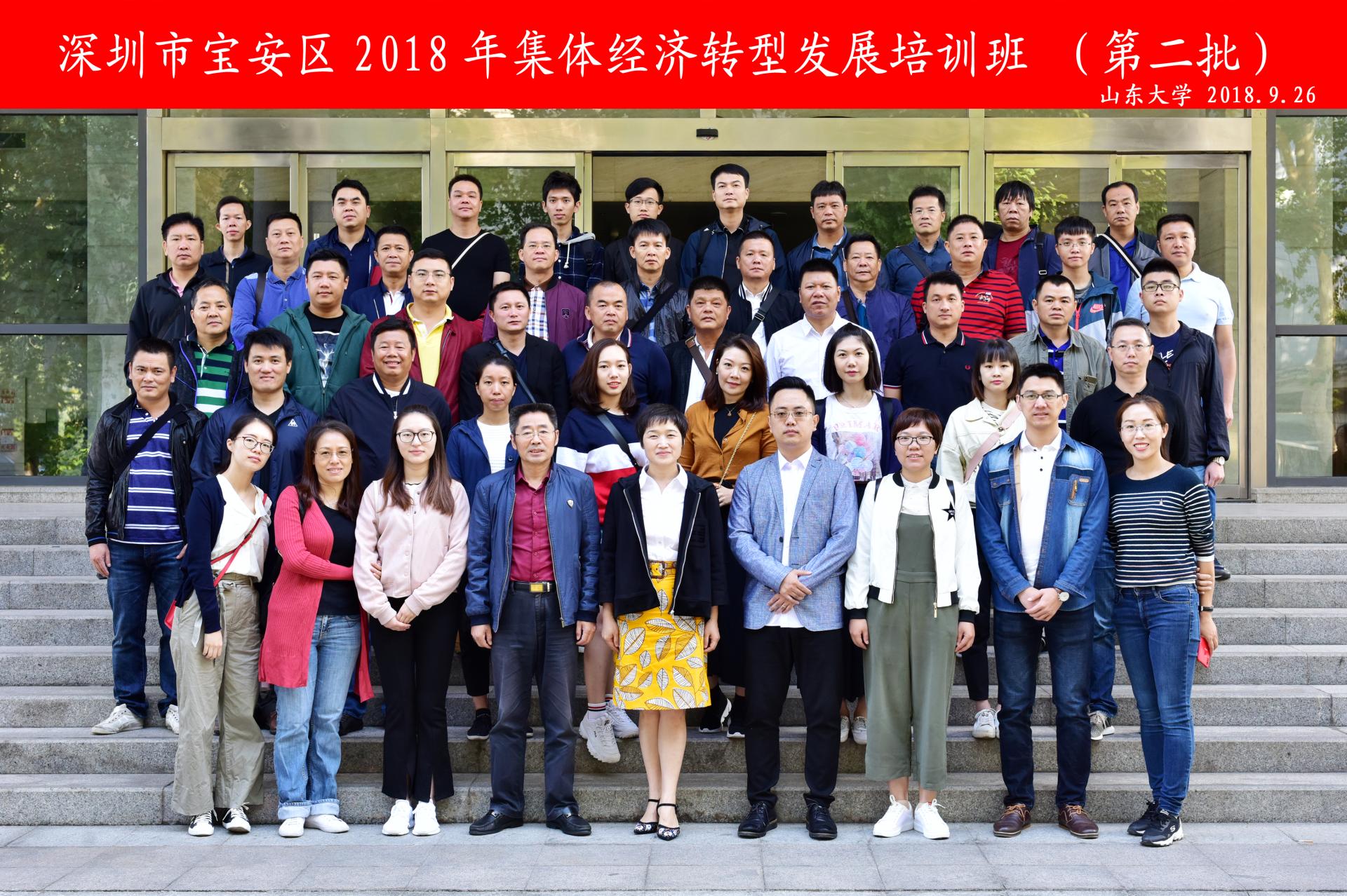 9月25日-30日,深圳市宝安区2018年第二批集体经济转型发展培训班在山东大学中心校区举行,45名深圳市宝安区股份经济新任董事长参加培训,培训由山东大学深圳研究院承办。
