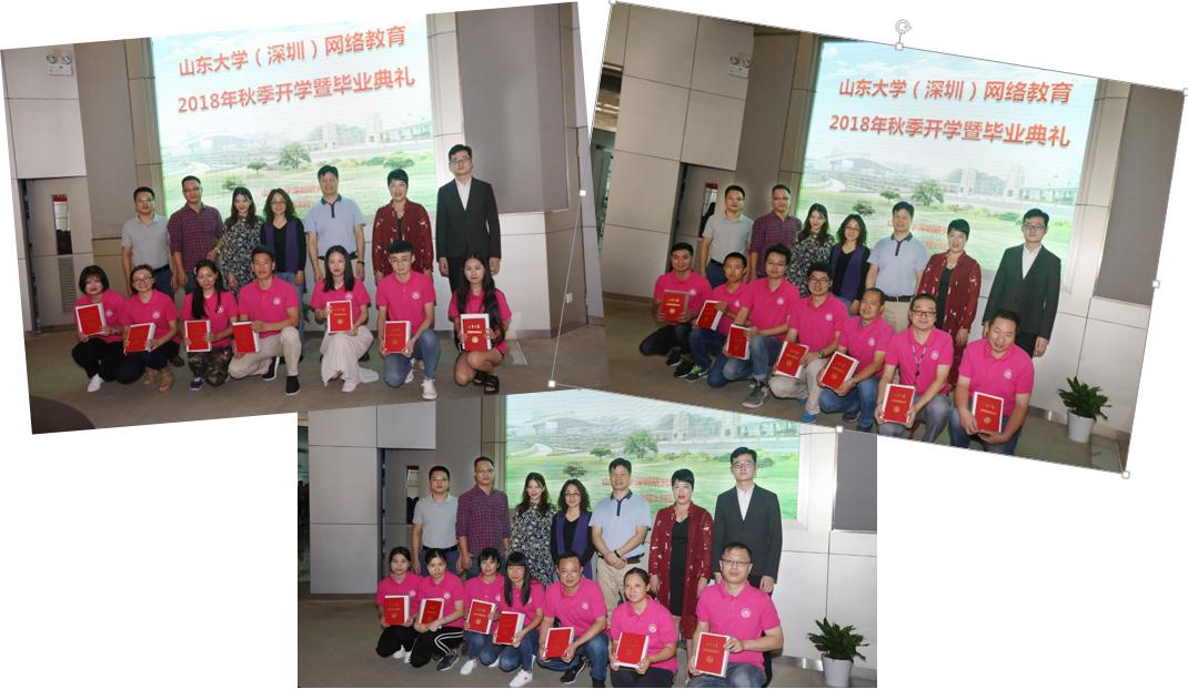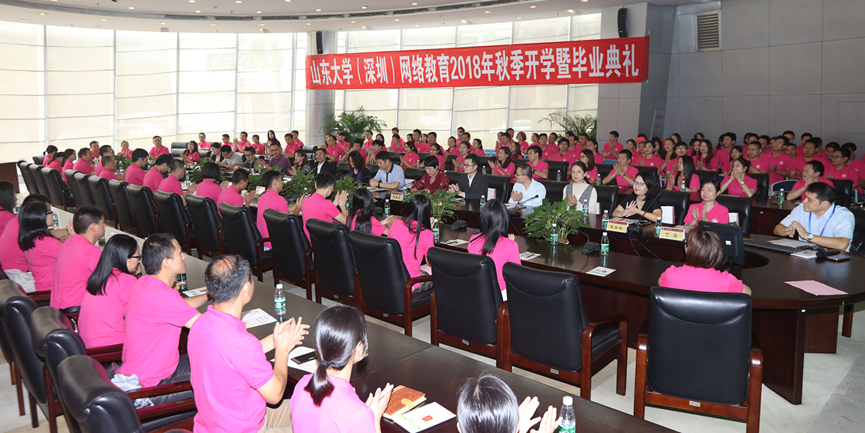 10月13日,山东大学(深圳)网络教育2018年秋季开学暨毕业典礼在深圳虚拟大学园举行。山东大学深圳研究院常务副院长、山东大学合作发展部副部长王明星,山东大学继续教育学院学生服务中心主任孙小萌出席了此次典礼。
