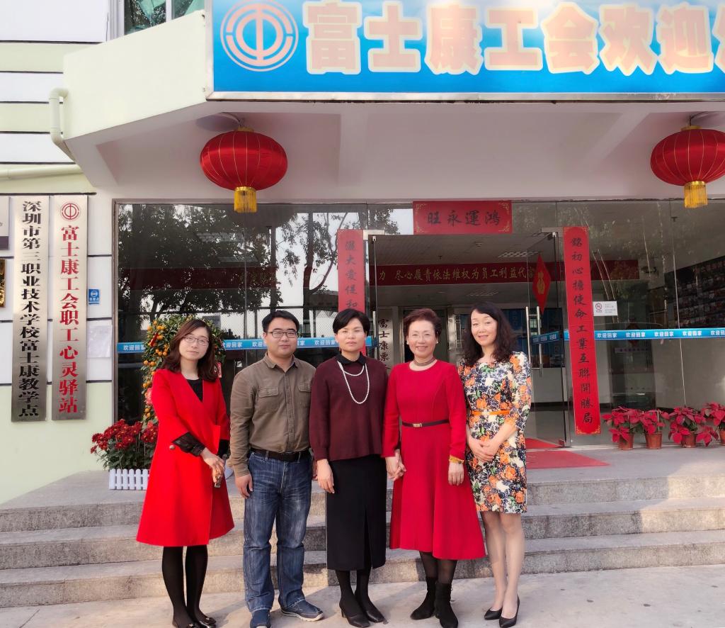 富士康科技集团工会联合会员工普惠中心部长温永强、富士康工会联合会培训服务部魏敏、山东大学深圳研究院教育培训部部长刘丽一同参加了座谈会。