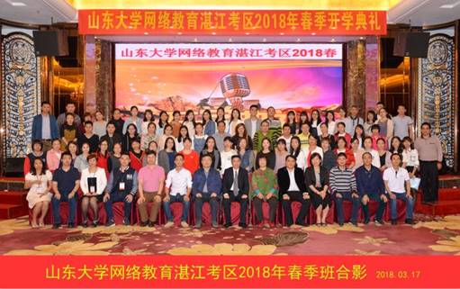 3月17日,山东大学网络教育2018年广东省“执业药师能力与学历提升计划”项目湛江班举行开学典礼。山东大学深圳研究院常务副院长兼山东大学合作发展部副部长王明星,山东大学深圳研究院教育培训部副部长余天豪,广东省执业药师注册中心主任朱思旭,广东湛江医药职业技能培训中心主任陈春晖等出席了开学典礼。101名学生参加了开学典礼。