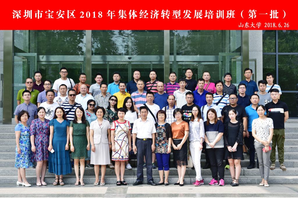 6月25日-30日,为转变深圳市宝安区股份合作公司经营管理人员发展思路,助力“滨海宝安、产业名城、活力之区”建设,山东大学深圳研究院承办了深圳市宝安区2018年集体经济转型发展培训班。