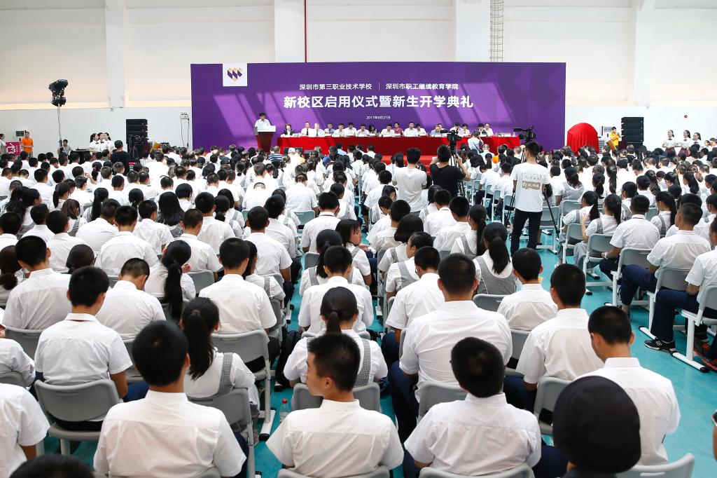 9月27日下午,深圳市第三职业技术学校新校区启用仪式暨2017级新生开学典礼在坪山新校区体育馆隆重举行,市人大常委会副主任、市总工会主席乔家华,坪山区委常委、常务副区长代金涛等出席仪式。山东大学网络教育学院副院长沈翔、山东大学深圳研究院常务副院长王明星、副院长傅杰受邀出席了启用仪式暨开学典礼。