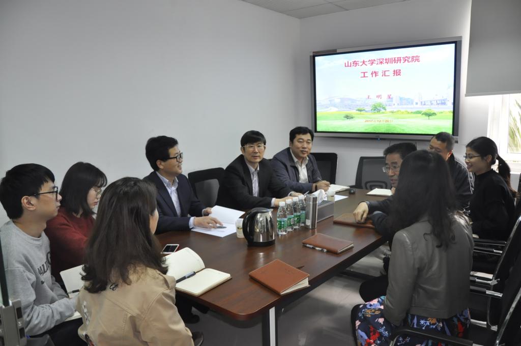 12月25日至26日,山东大学副校长韩圣浩一行到深圳考察交流,并到深圳研究院指导工作。山东大学人事部部长陈宏伟、人事部编制工作办公室科长郑彬、深圳研究院常务副院长王明星等参加了活动。