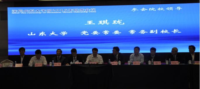 2016年11月17日,深圳虚拟大学园2016年联席会议在深圳市民中心举行。虚拟大学园46所国内外著名成员院校领导、嘉宾200余人出席会议。深圳市常委常务副市长张虎、科技部创新发展司副司长俞健、深圳市科技创新委员会党组书记、副主任邱宣等领导出席会议并发表讲话。山东大学常务副校长王琪珑、合作发展部部长王飞、科学技术研究院副院长黄波、山东大学深圳研究院常务副院长兼合作发展部副部长王明星、深圳研究院副院长、深圳校友会副会长傅杰等代表出席会议。会议由市政府秘书长刘佳晨主持。