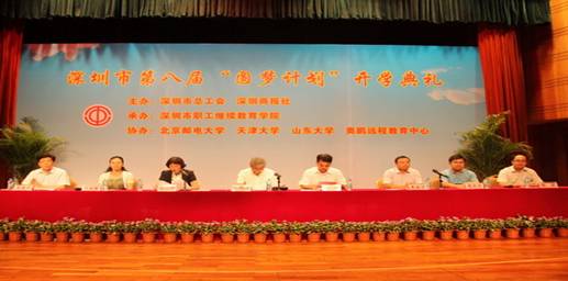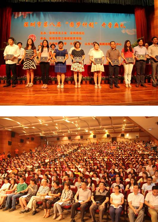 9月18日下午,深圳市总工会第八届“圆梦计划”开学典礼在深圳报业集团隆重举行,1000名优秀职工拿到了山东大学等3所高校录取通知书,实现了他们的大学梦想。山东大学网络教育学院副院长周庆华、山东大学深圳研究院常务副院长王明星、山东大学深圳研究院教育培训部刘丽出席了此次典礼。